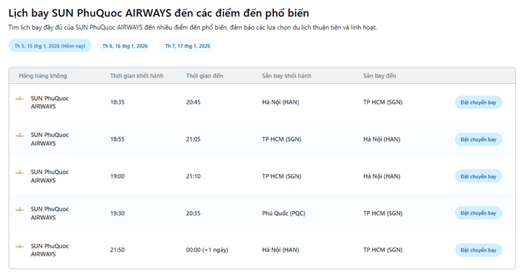 Trong xu hướng đó, SUN PhuQuoc Airways được xem là lựa chọn đáng chú ý khi tập trung khai thác các chặng bay phục vụ du lịch, đồng thời áp dụng chiến lược giá linh hoạt theo từng giai đoạn trong năm. Việc nắm bắt cách hãng phân bổ giá vé theo thời điểm sẽ giúp người mua chủ động hơn trong quá trình săn vé.